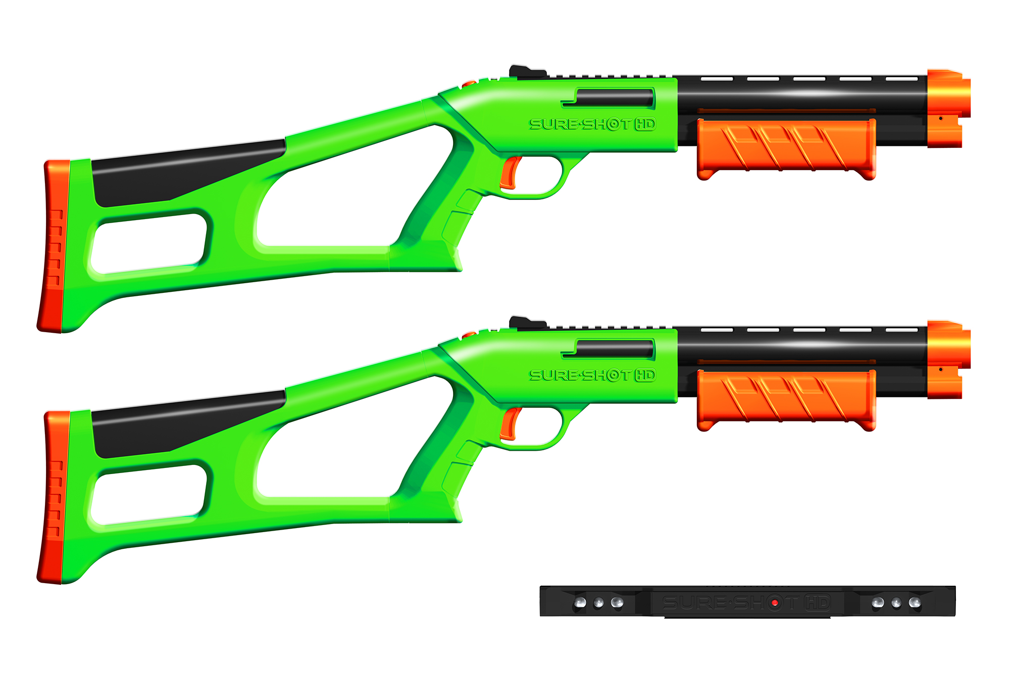 Two Sure Shot HD nerf guns on a white background.
