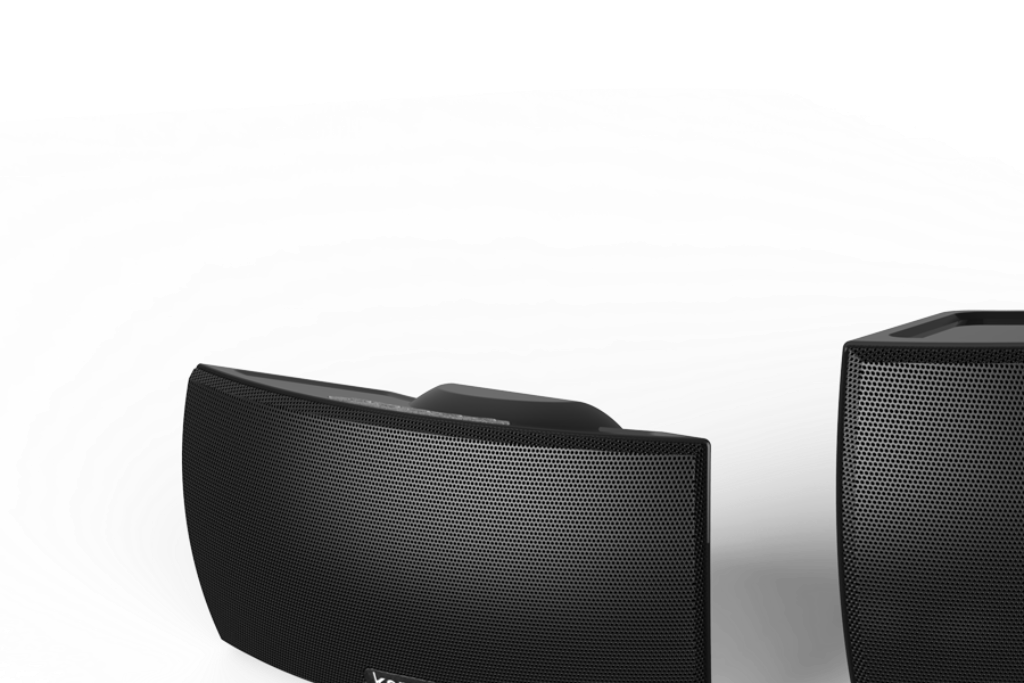 Two Korus speakers on a white background.