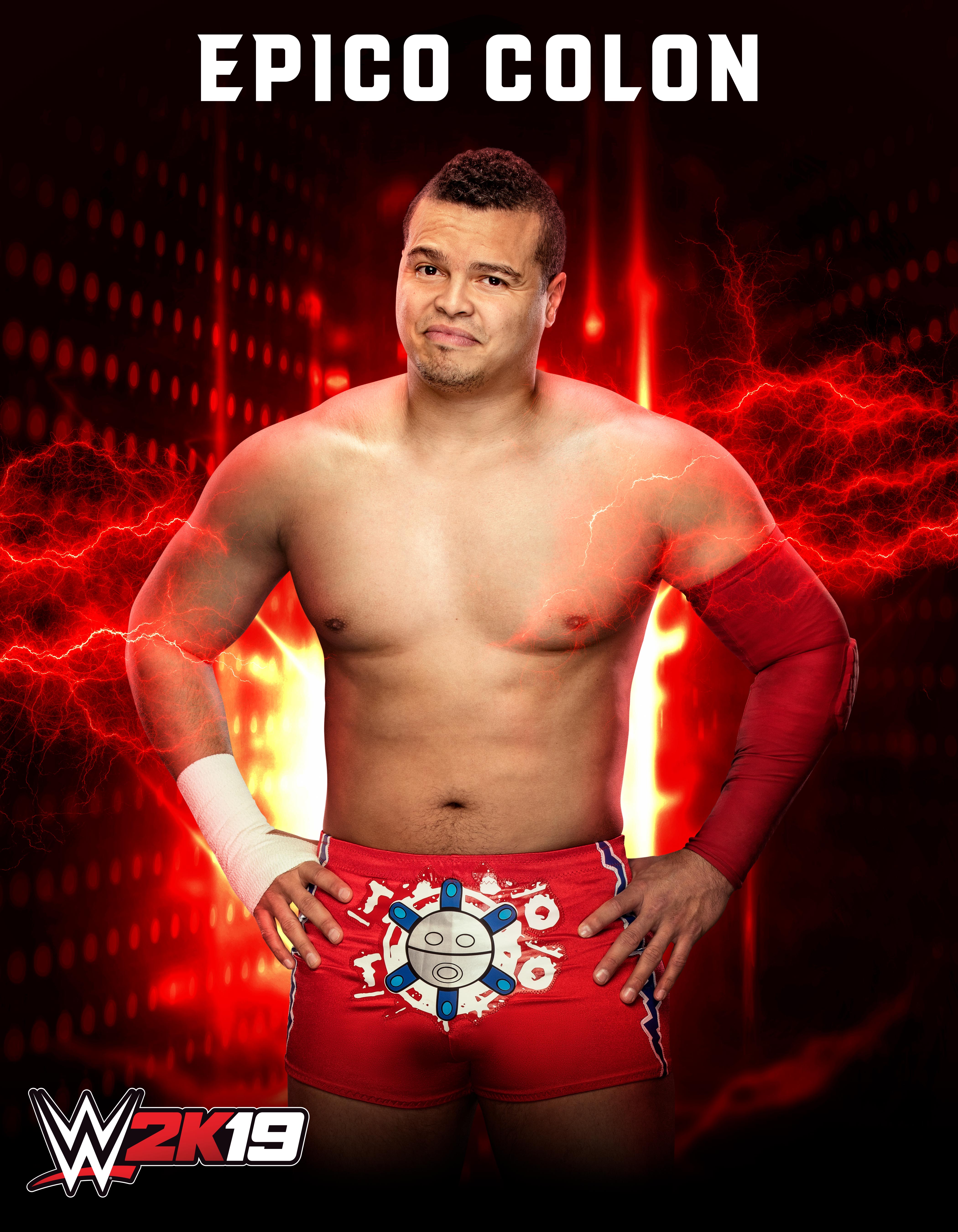 Epico, a WWE Superstar, featured on the official WWE 2K19 poster during the Second Wave of releases in 2019.
