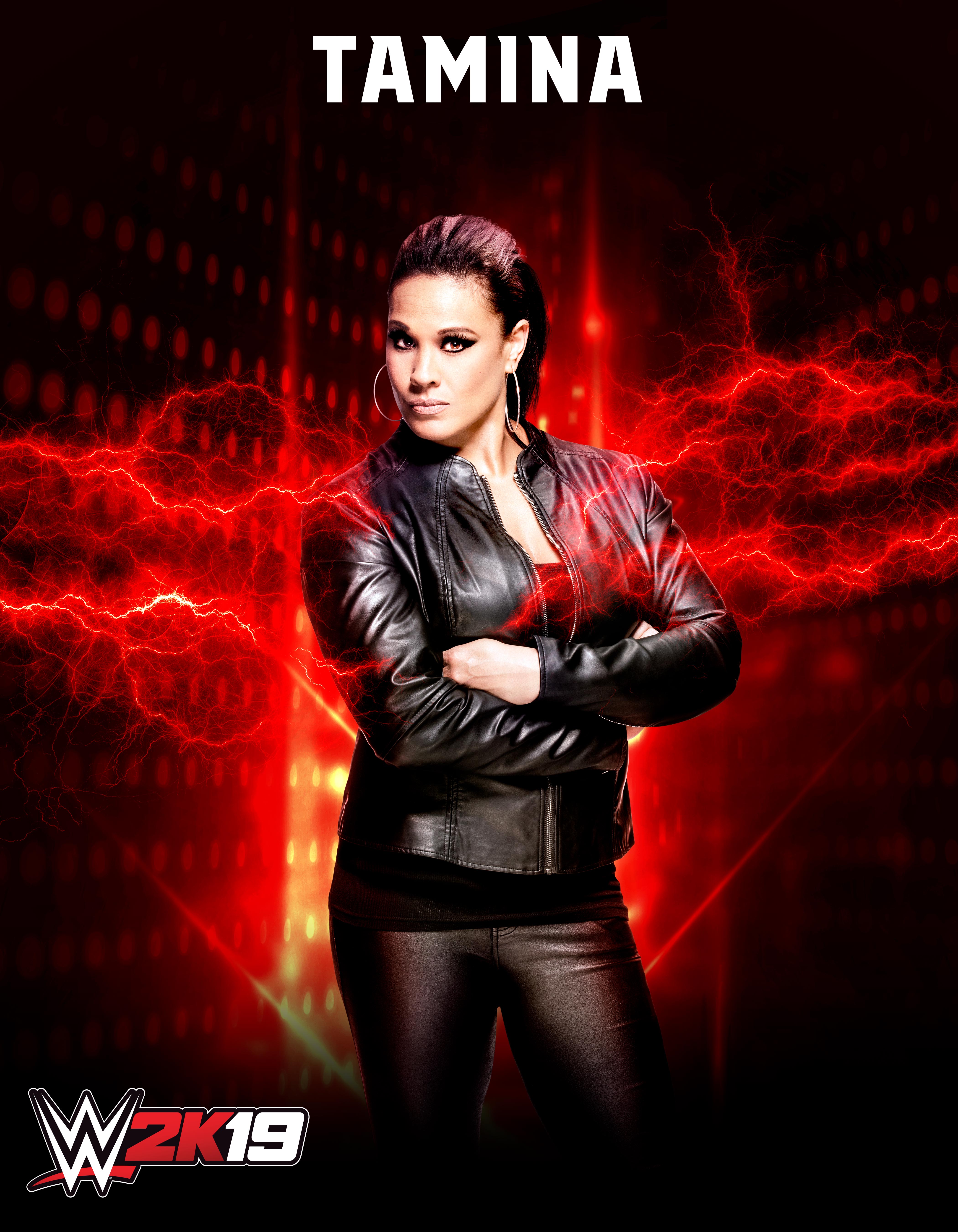 A poster featuring WWE Superstar Tamina promoting WWE 2K19.