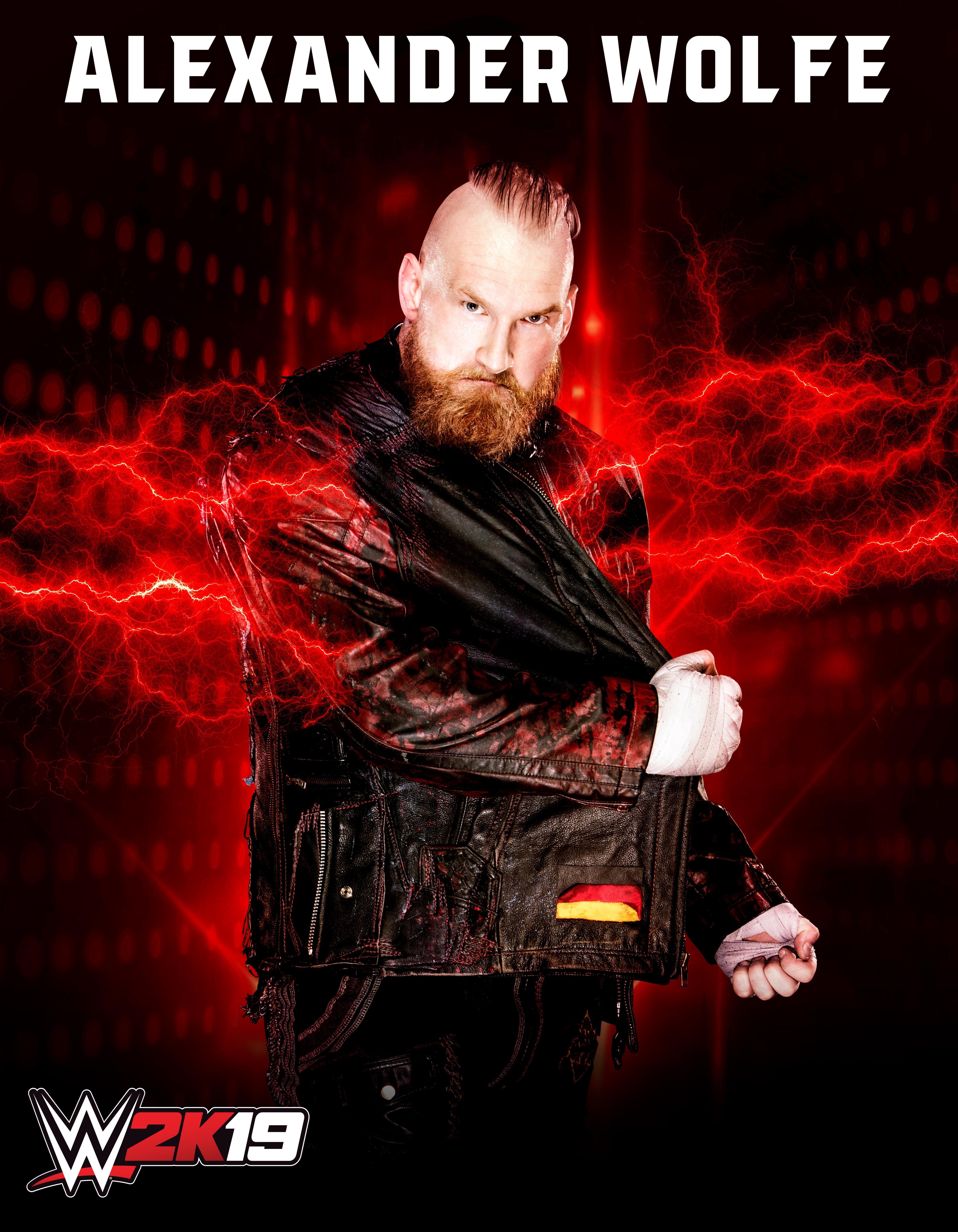 Alexander Wolfe, one of the WWE Superstars, dons a stylish leather jacket as he prepares for his appearance in WWE 2K19’s second wave.