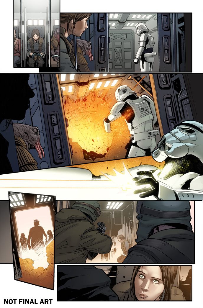 A Rogue One comic page depicting a scene from Star Wars.