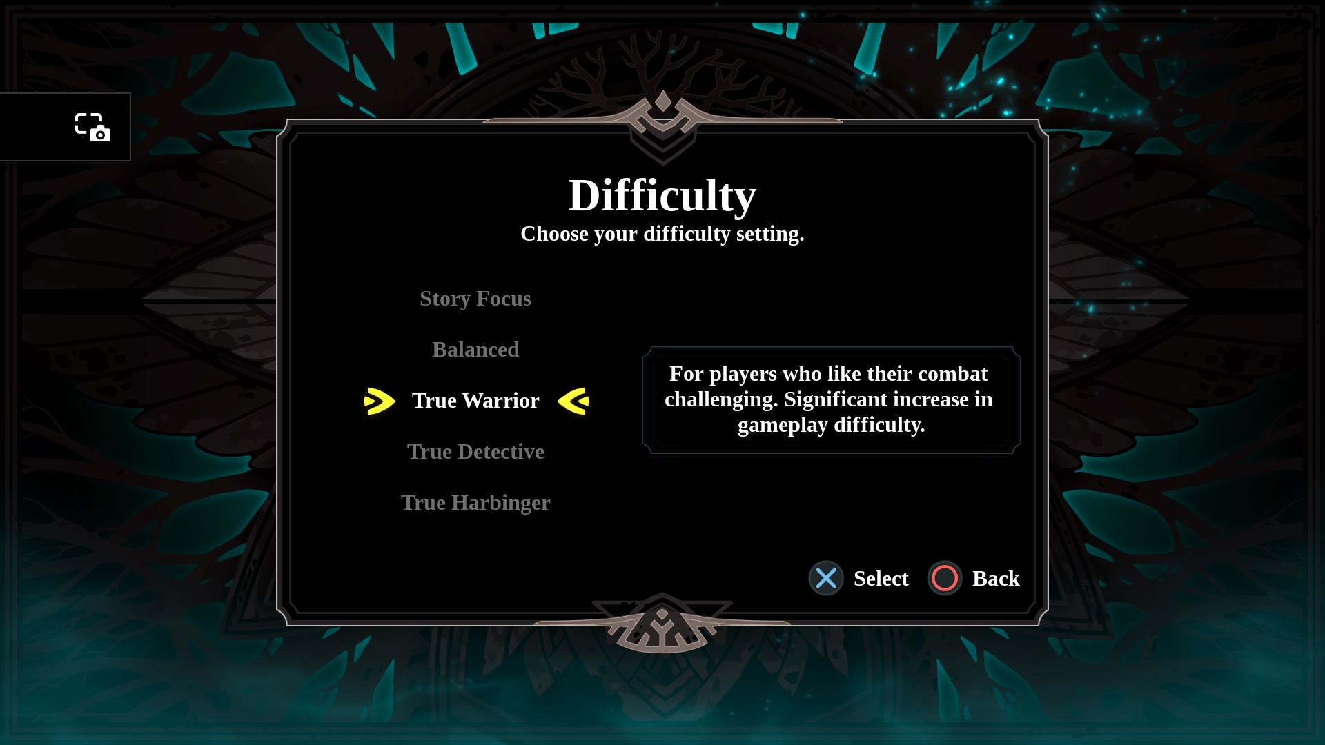 A screenshot of the difficulty setting in the Omensight game.